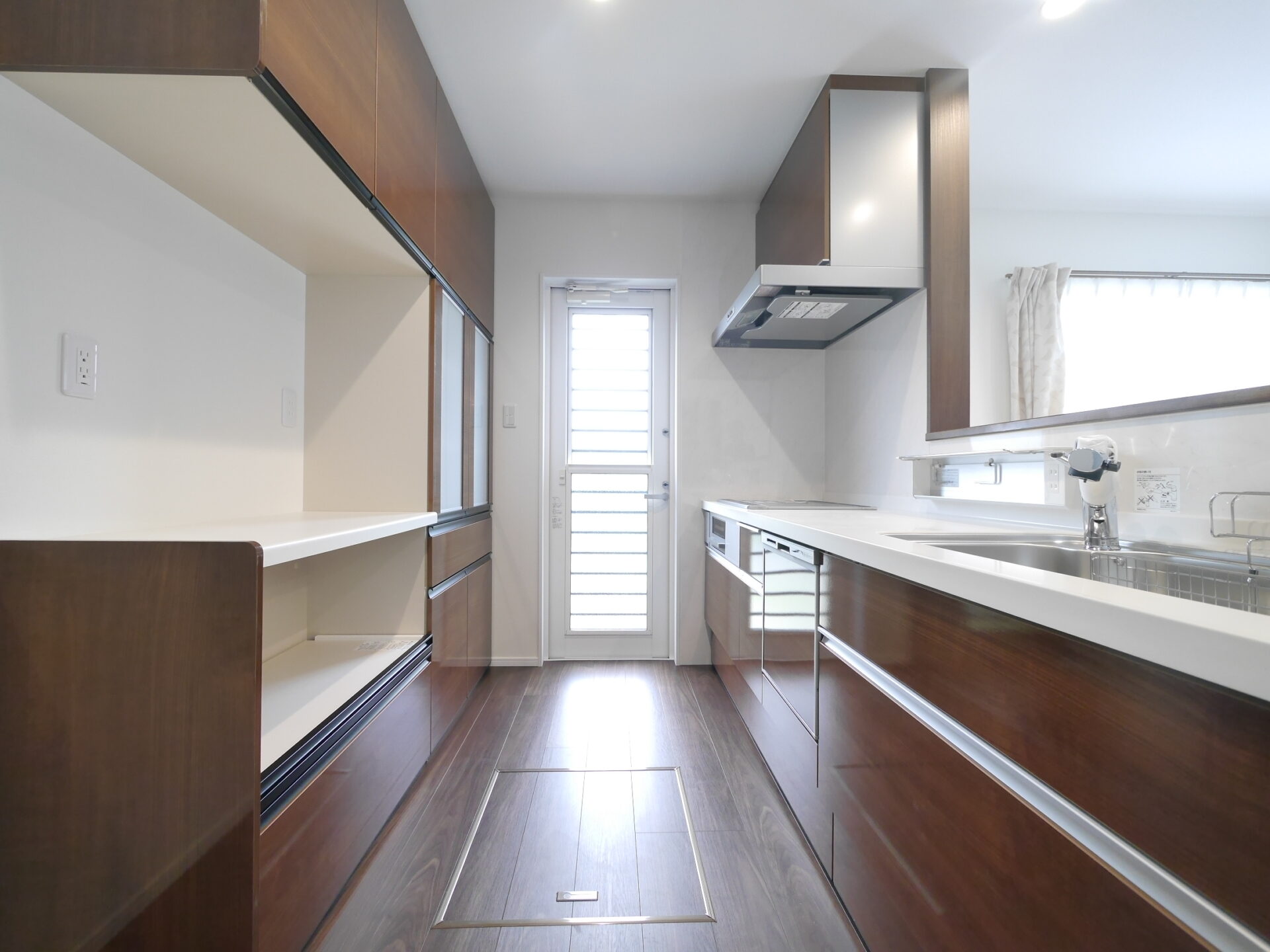 リビングの一角にくつろぎの和室を配置しております。柔らかい肌触りの畳は赤ちゃんの子守にもぴったりです。キッチンから見える場所にある為、お子様を見守りながらご飯の準備ができます。